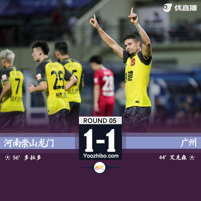 JRS直播网讯 北京时间7月15日,2021赛季中超联赛第五轮一场补赛在河南嵩山龙门和广州队之间展开较量,上半场结束前艾克森打破场上僵局,下半场多拉多点球命中将比分扳平,终场结束前廖力生被红牌罚下,最终河南嵩山龙门1比1和广州恒大握手言和,本赛季他们仍难求一胜。
