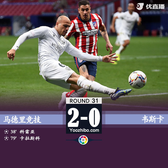 JRS直播网4月23日讯 北京时间4月23日1点,西甲第31轮马德里竞技主场对阵韦斯卡。上半场马竞占据绝对优势,科雷亚转身抽射先拔头筹。下半场,费尔南德斯多次做出漂亮扑救,略伦特前场断球助攻卡拉斯科打进一球,全场比赛结束,马德里竞技2-0韦斯卡。本场比赛过后马竞以73分重新夺回联赛榜首的位置,领先身后皇马3分。