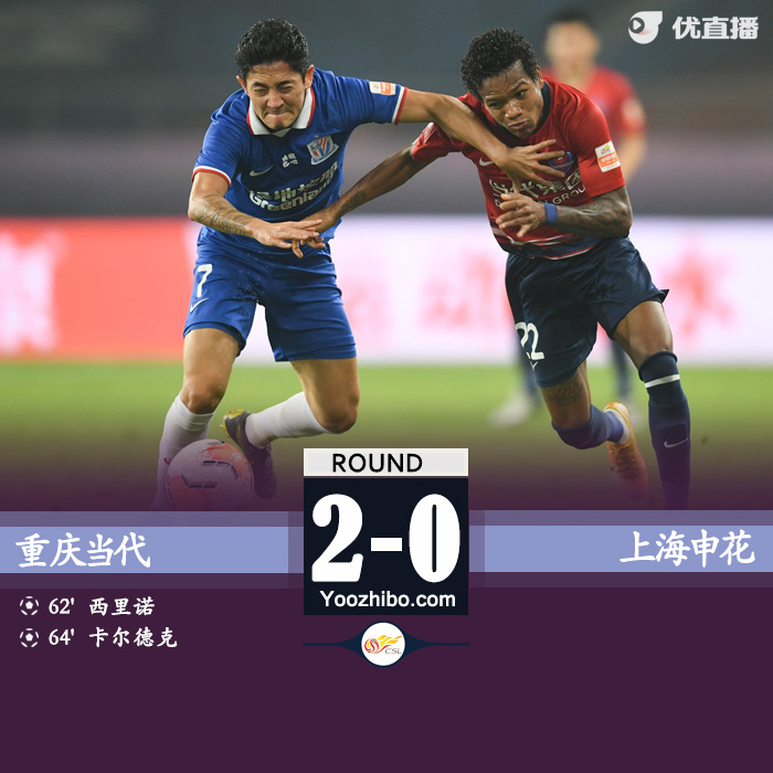 第65分钟,重庆界外球发出,卡尔德克得球后与马尔西尼奥撞墙配合后,面对门将一脚推射破门,重庆当代2-0上海申花。大比分双方变成3-3,重回同一起跑线。