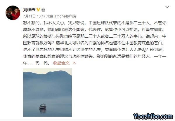 王小东表示:谈到北大和清华对国家的贡献的质疑,这个话题是一个搞男足的人引起的。中国男足搞成啥样,大家都知道, 这个人为了证明中国男足没这么差,拉着中国教育陪绑,说中国教育也不咋地,也点了北大清华的名字。从他话的本身不能说贬低北大和清华,但是一大群没脑子的人,一个劲骂北大清华。这不公平。这样做,这样反智,将把国家和民族推向深渊。