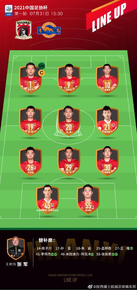 JRS直播网讯 北京时间今天下午,2021赛季足协杯第一轮,在陕西俑士超越与青岛海牛的比赛中,42岁前国门刘云飞首发出场。