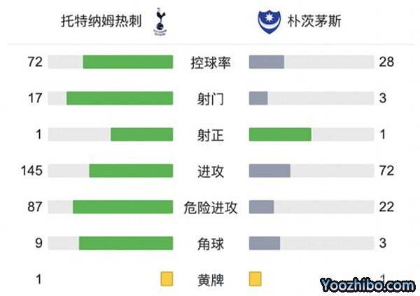 全场比赛结束,最终热刺1-0朴茨茅斯。