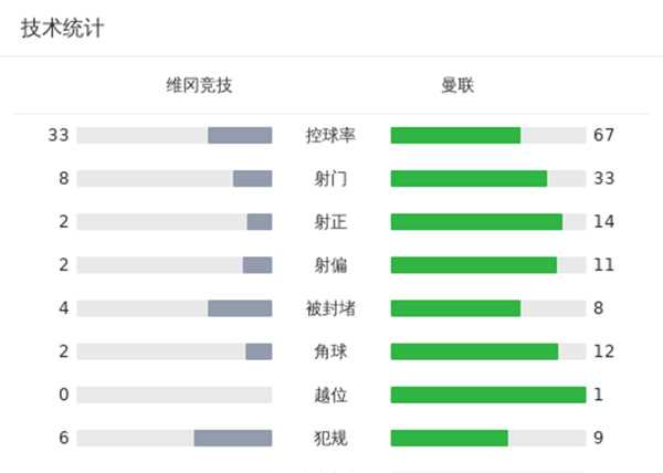 曼联2-0维冈 红魔狂射33脚B费点射达洛特破门