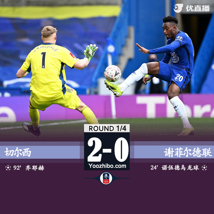 全场比赛结束,切尔西在主场2-0击败谢菲联晋级。