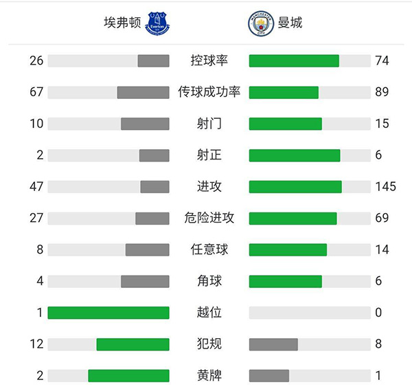 全场比赛结束,曼城2-0击败埃弗顿,进入足总杯四强。