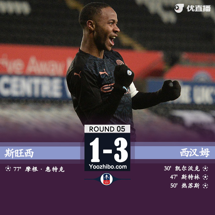 曼城3-1斯旺西 斯特林单刀破门热苏斯建功