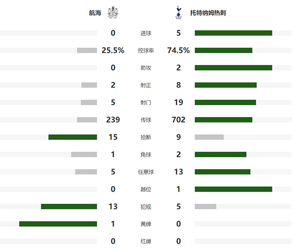第23分钟,阿里和热德松撞墙配合后突入禁区斜塞,维尼修斯过掉门将打入空门,热刺首开纪录,1-0!