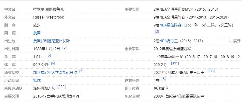 拉塞尔-威斯布鲁克个人详细资料简介: