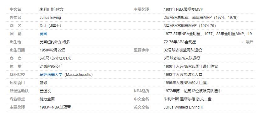 朱利叶斯-欧文个人详细资料简介: