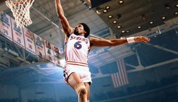 朱利叶斯·欧文生涯其中一次值得铭记的进攻表演,发生在1980年总决赛上,当时他用一记不可思议的篮板后上篮征服了全场。他先是在右侧底线位置运球过掉了湖人队的前锋马克·兰斯伯格,突入内线后起势上篮。突然,高达7尺寸的贾巴尔半路杀出,将欧文的进攻路线挡住不说,眼看他就要出界了。欧文瞬间腾起。他的左肩膀已经在界外了。然而,欧文凭借出色的滞空力,肩膀一沉来了个拉杆反手上篮,将球打进。这一记进球与他的罚球线起跳扣篮一道,成为欧文生涯最具代表性的时刻之一。