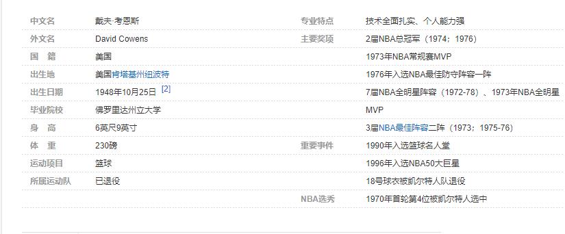 戴夫·考恩斯(David Cowens),1948年10月25日出生于美国肯塔基州纽波特,前美国职业篮球运动员,司职中锋/大前锋 。个人简介: