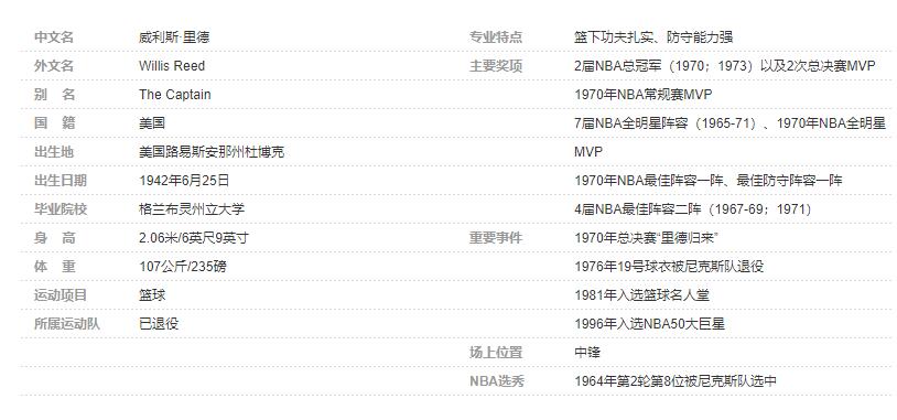 威利斯-里德个人详细资料简介:
