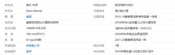 德文-布克个人详细资料简介: